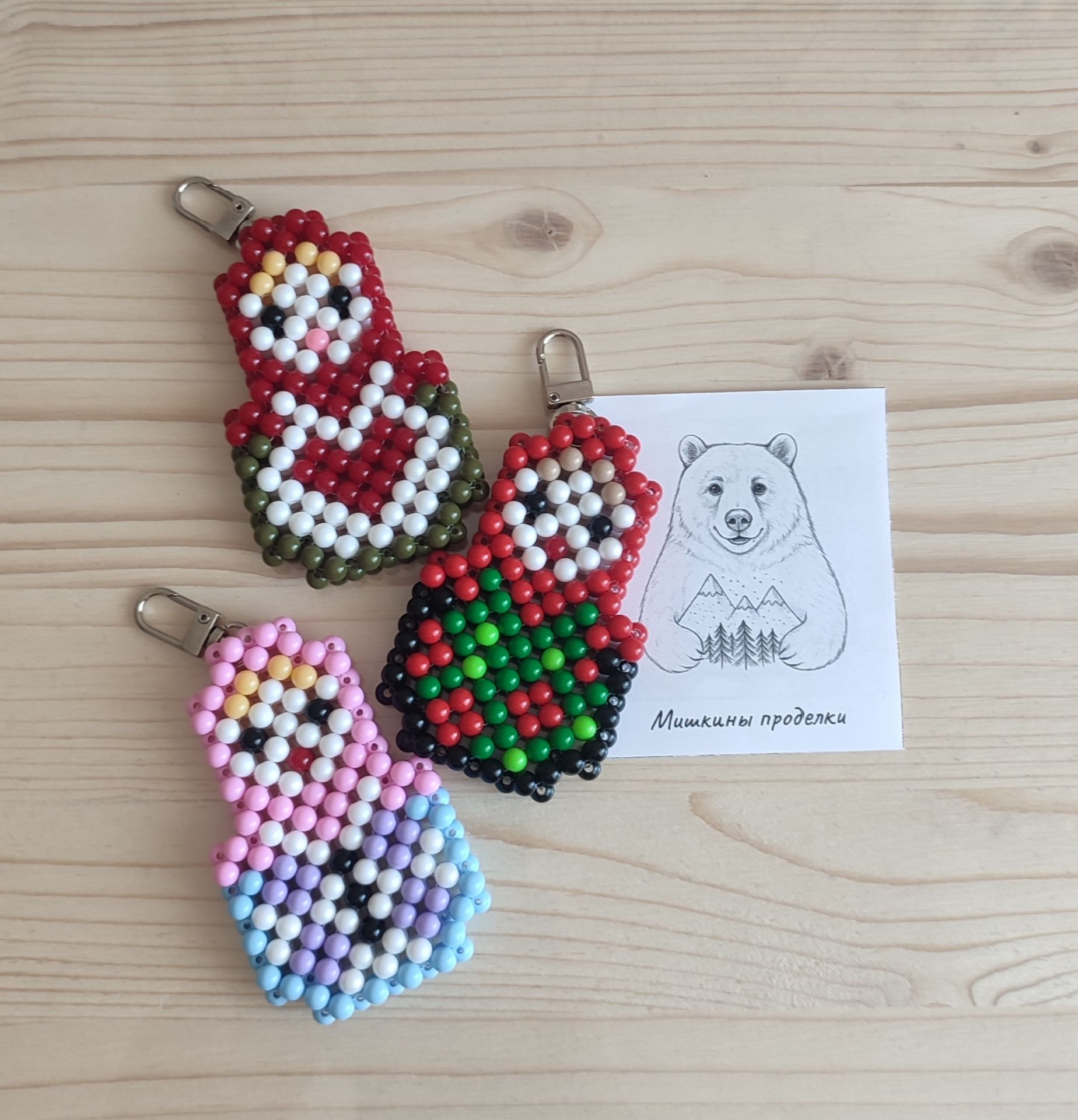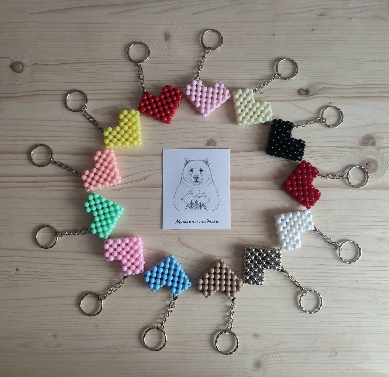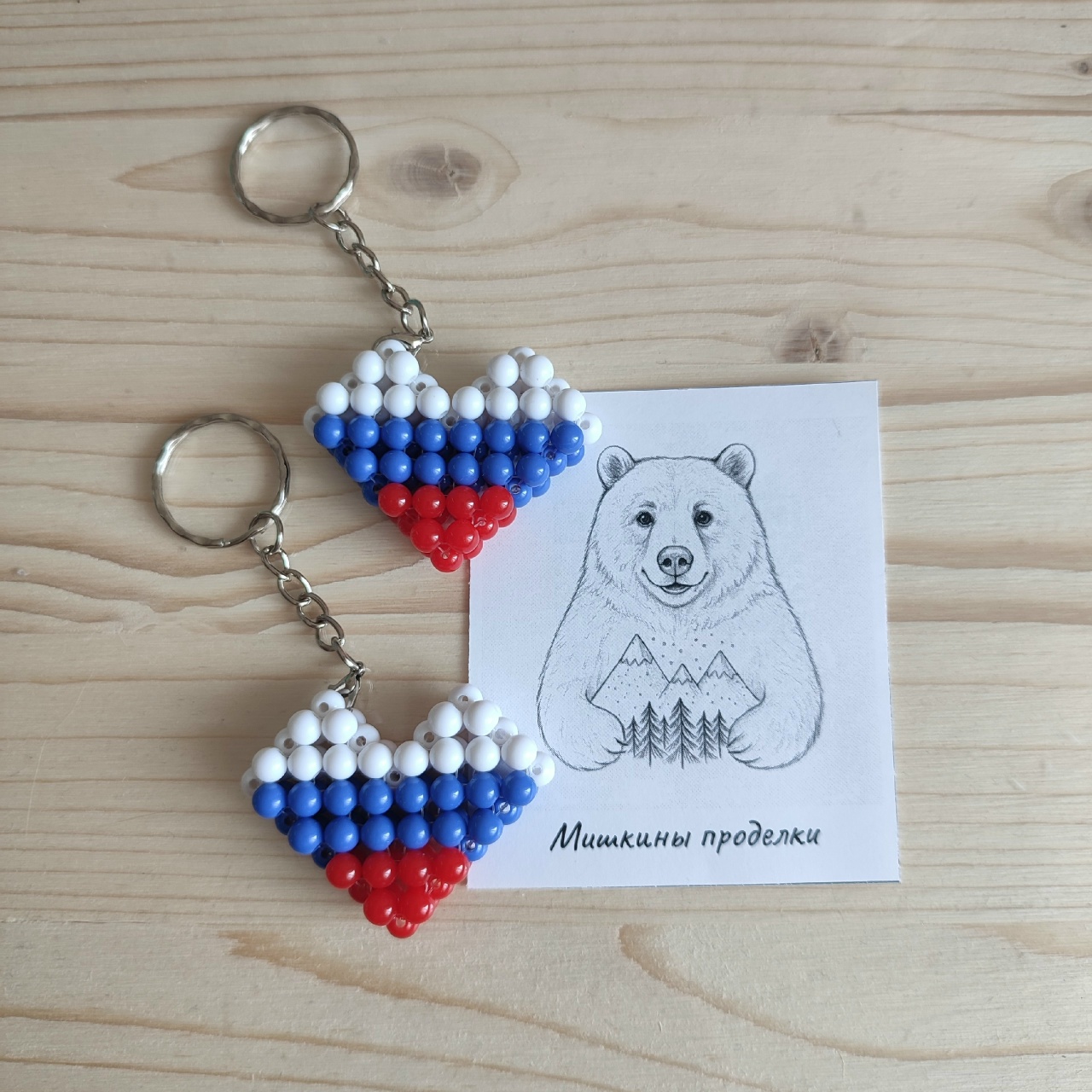 - Папа нарезает красивые бумажки для упаковки моих поделок. Освоил плетение стебельков для тюльпанов и даже сплёл маме на 14 февраля пиксельное сердце. Но самое важное — он создал этот сайт, где вы можете ознакомиться с фото брелков, обвесов и подвесок, сделанных нашими руками.