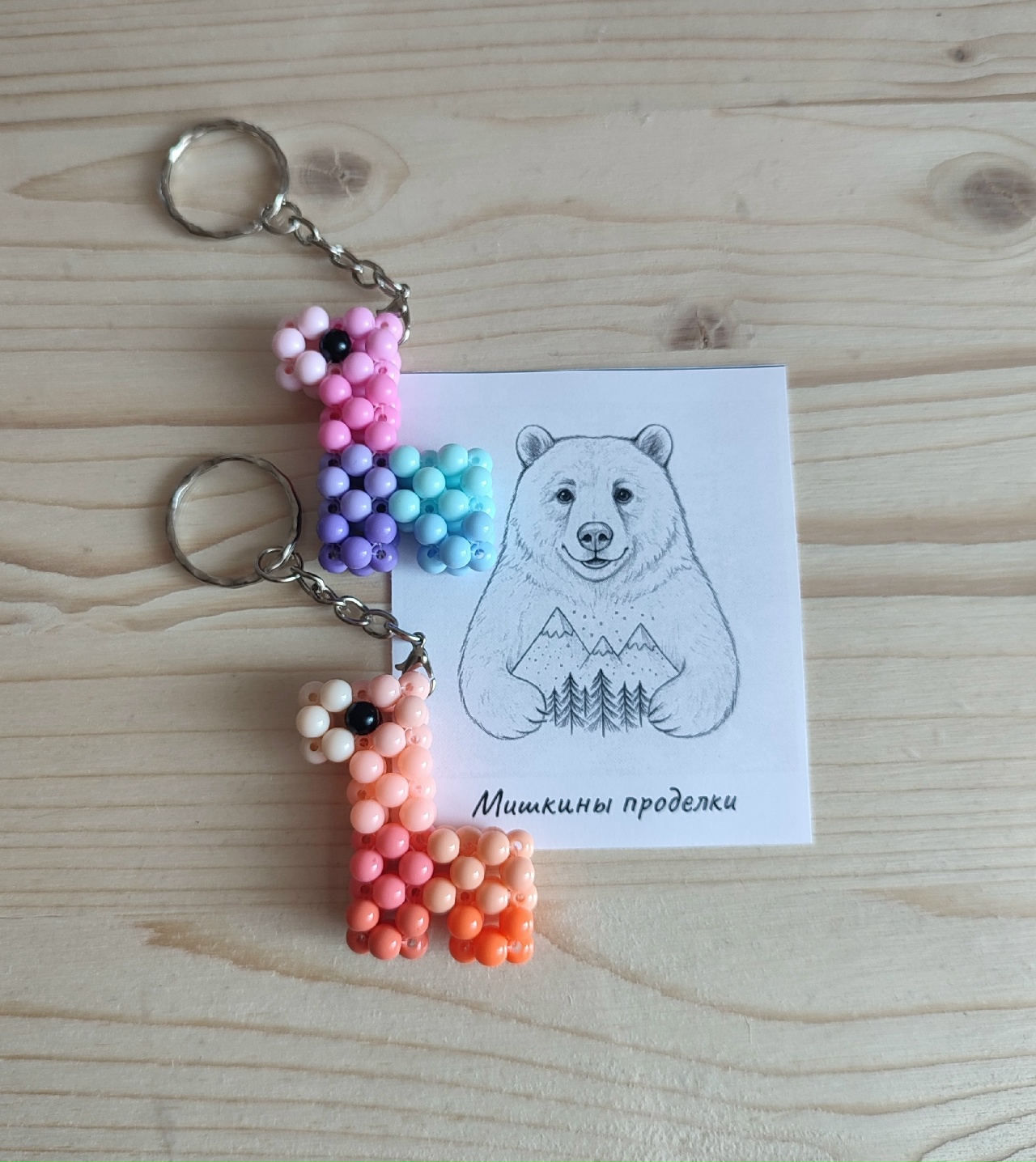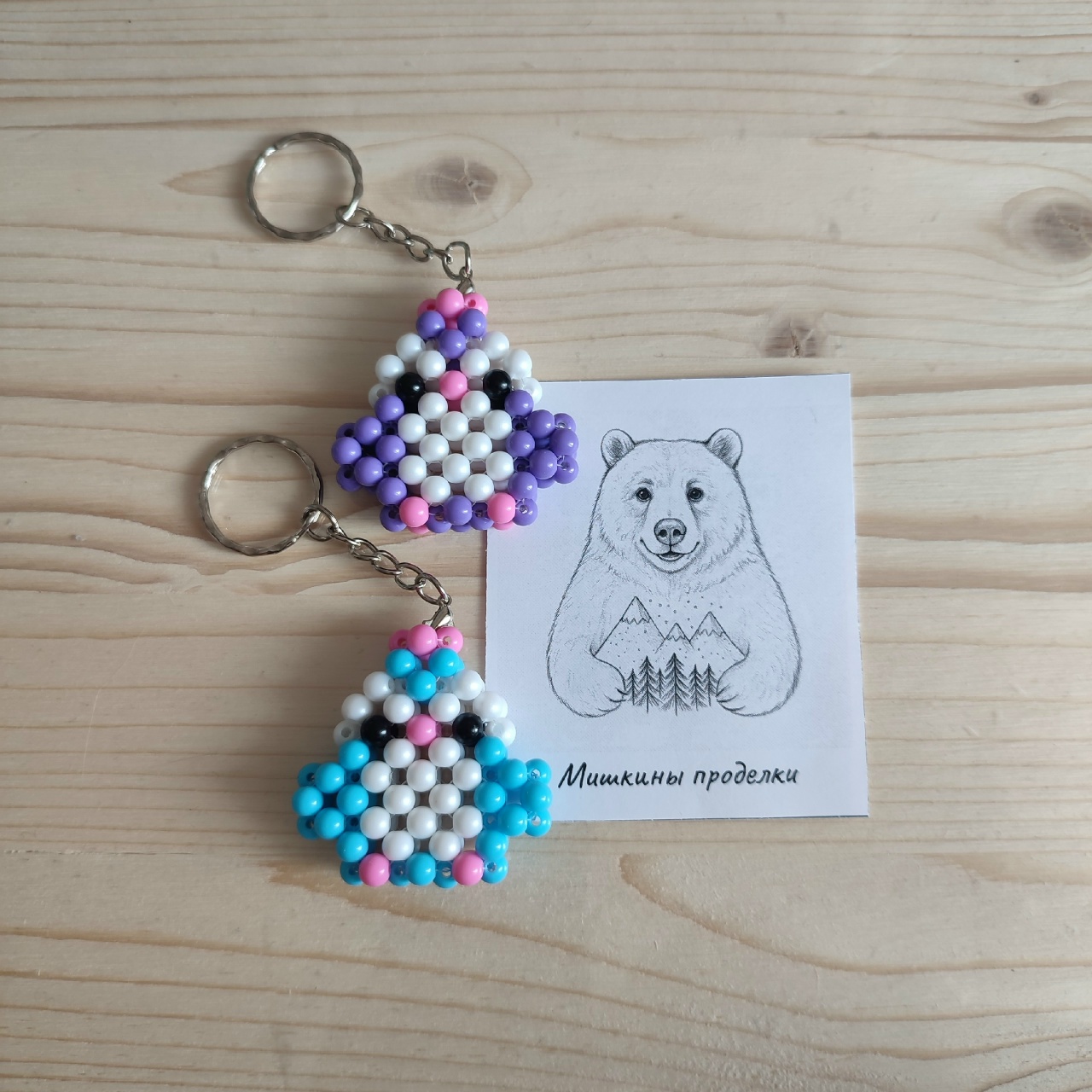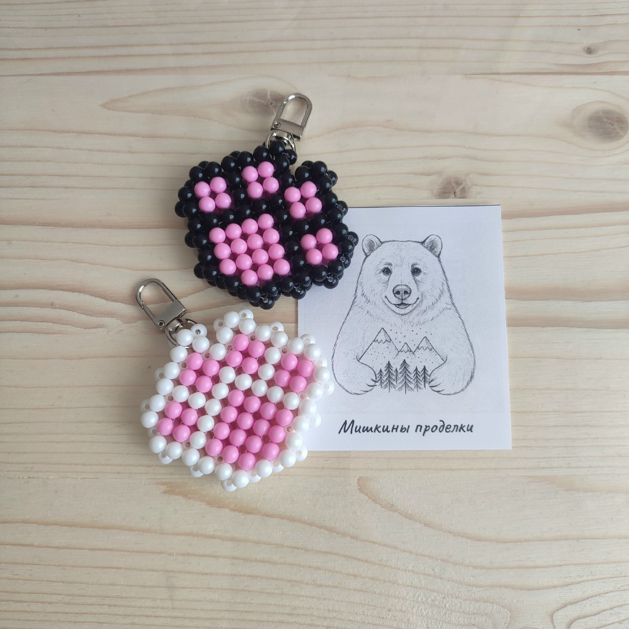 - Папа нарезает красивые бумажки для упаковки моих поделок. Освоил плетение стебельков для тюльпанов и даже сплёл маме на 14 февраля пиксельное сердце. Но самое важное — он создал этот сайт, где вы можете ознакомиться с фото брелков, обвесов и подвесок, сделанных нашими руками.
